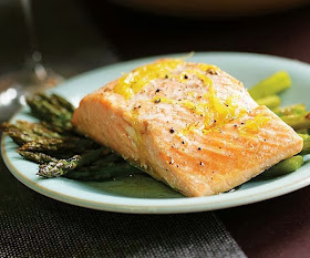 Dinner: Lemon Steamed Salmon, kale chips, steamed asparagus